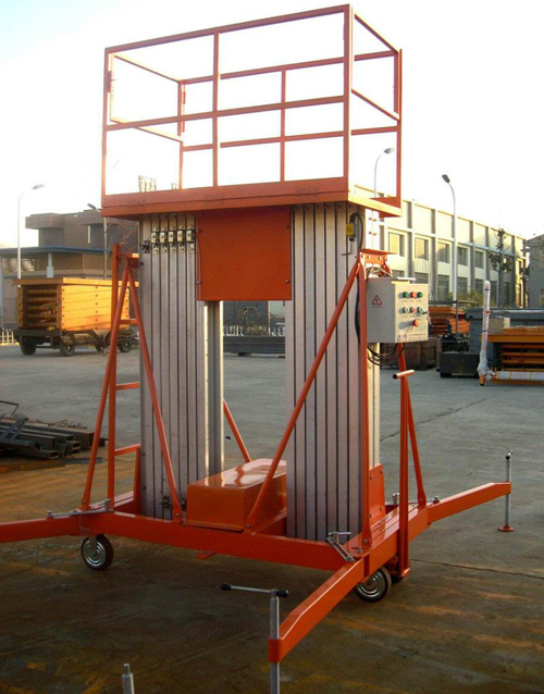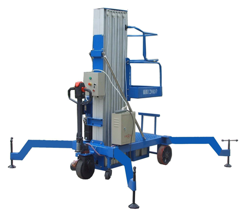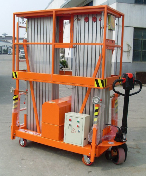 鋁合金液壓升降機(jī)整機(jī)重量輕,機(jī)動(dòng)性好,適合單人操作;特制的桅柱間導(dǎo)輪裝置,升降平穩(wěn)自如;結(jié)構(gòu)緊湊,運(yùn)輸狀態(tài)尺寸小,可進(jìn)入一般電梯的轎廂以及能順利通過門洞和狹小通道;雙重保護(hù)的支腿結(jié)構(gòu),工作更安全,且可貼近工作面升降作業(yè);根據(jù)使用場(chǎng)所高的要求,可做成手動(dòng)放到或電動(dòng)放到式升降平臺(tái)。以滿足門口比較低時(shí)使鋁合金升降平臺(tái)無法進(jìn)入的情況。