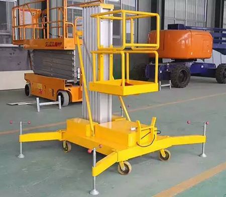 鋁合金液壓升降機(jī)且耗電少、無污染、工作時(shí)不傷地面,可用于貼墻工作及探出作業(yè),工作無死角。鋁合金液壓升降機(jī)廣泛適用于星級酒店,大型超市等各行業(yè)大廳、廠房內(nèi)的高空清潔和電線、照明安裝維護(hù)類高空作業(yè),鋁合金液壓升降機(jī)根據(jù)其自身升高度可分為:單桅柱式升降機(jī)(4-10米),雙桅柱式升降機(jī)(8-14米)跟多桅柱式升降機(jī)(12-22米)。