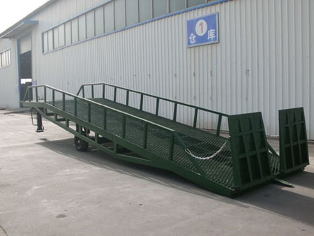 移動(dòng)式登車橋是與叉車配合使用的貨物裝卸專用輔助設(shè)備,有了它叉車能直接從地面駛?cè)肫囓噹麅?nèi)部進(jìn)行批量裝卸作業(yè)。產(chǎn)品采用人工液壓動(dòng)力,不需接動(dòng)力電源。只需單人操作,即可實(shí)現(xiàn)貨物的安全快速裝卸。它可使企業(yè)減少大量勞動(dòng)力,成倍提高裝卸作業(yè)效率,加快貨物流通速度,獲取更大經(jīng)濟(jì)效益。